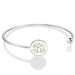 Celebrity Monogrammed Initial Bangle Bracelet Sterling Silver