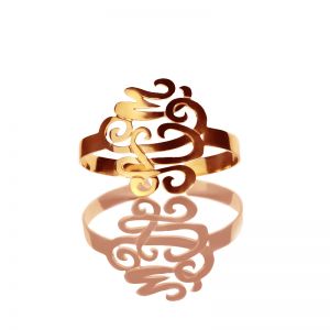Monogram Cuff Bracelet Hand Writing Rose Gold