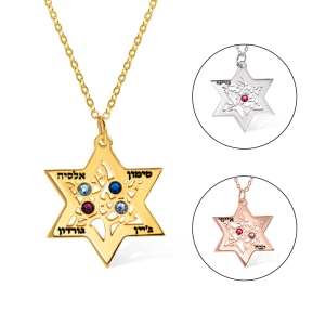 Personalized Tree of Life Star of David Necklace, Hebrew Names and Birthstones Magen David Necklace, Judaica Jewelry, Jewish Gift for Mom/Wife/Grandma