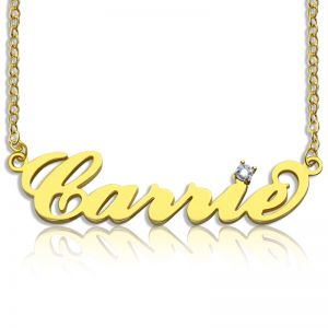 Carrie Nameplate Necklace with Birthstone 18K Gold Plated