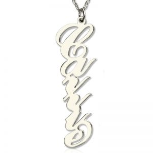 Sterling Silver Full Birthstone Carrie Name Necklace VERTICAL