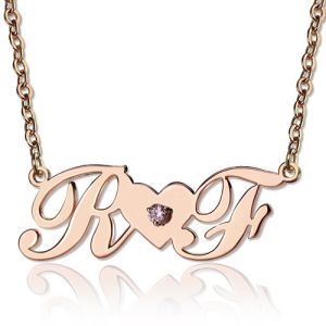 Custom 2 Initial Birthstone Name Necklace Rose Gold