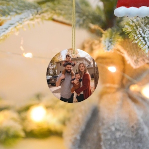 Personalized Round Christmas Photo Ceramic Ornament