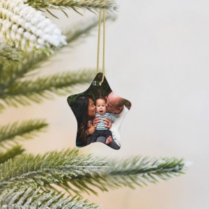 Personalized Star-shaped Christmas Photo Ceramic Ornament