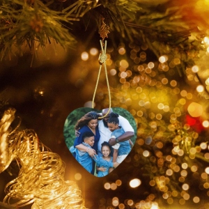 Personalized Heart Christmas Photo Ceramic Ornament