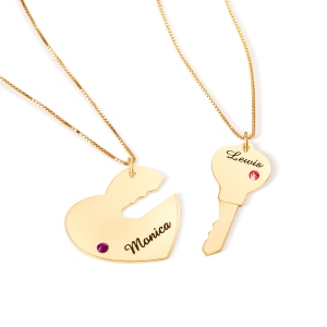 Key to My Heart Couple Name Pendant Necklaces Gold