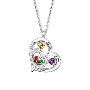 Heart-shaped Birthstone Family Necklace with Customized 1-10 Names