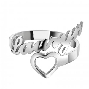 Engraved Heart Sterling Silver Monogram CZ Ring