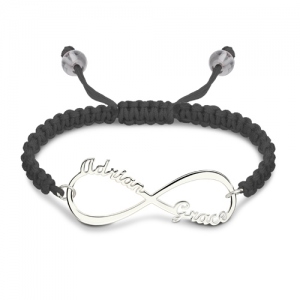 Personalized Infinity 2 Names Cord Bracelet Sterling Silver