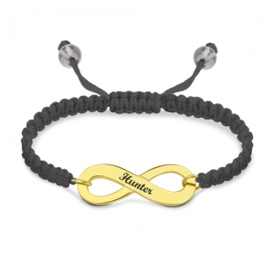 Personalized Infinity 2 Names Cord Bracelet Gold Plated