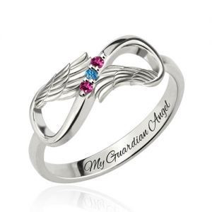Engraved Angel Wings Infinity Ring with Birthstones Silver
