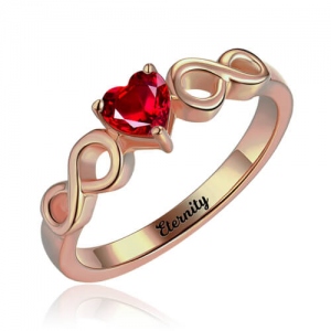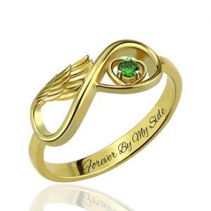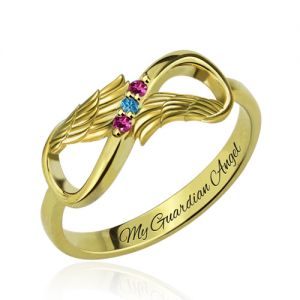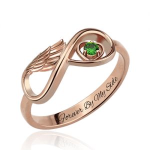 Angel Wing Infinity Heart Birthstone Engraved Ring Rose Gold