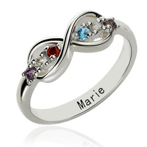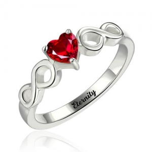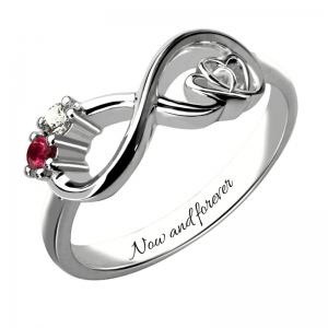 Customized Heart in Heart Infinity Birthstone Ring Engraved Promise Ring Couples Birthstone Ring