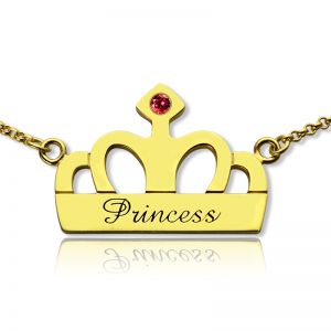 Princess Crown Charm Necklace with Birthstone & Name 18k Gold