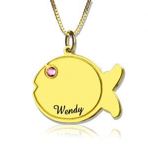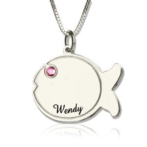 Fish Birthstone Necklace Engraved Name Sterling Silver