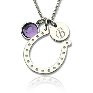Horseshoe Good Luck Necklace with Initial & Birthstone Charm