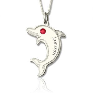 Dolphin Necklace with Birthstone & Name Sterling Silver