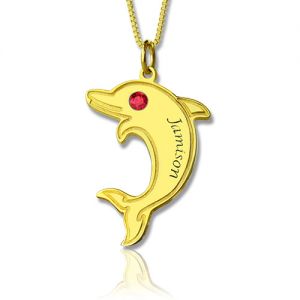 Dolphin Pendant Name Necklace with Birthstone 18k Gold