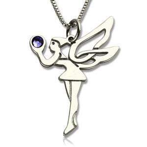 Personalized Fairy Birthstone Necklace for Girls Sterling Silver