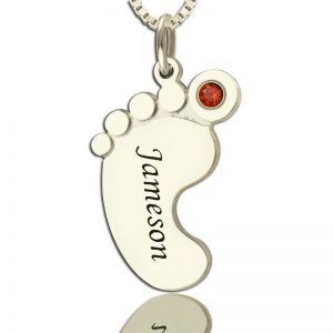 Personalized Mother's Baby Feet Name Necklace with Birthstone