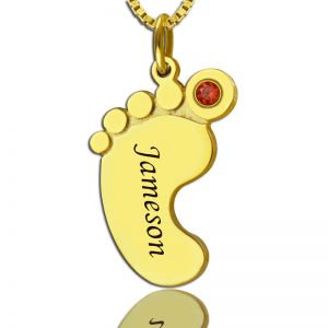 Gold Baby Foot Pendant Necklace with Birthstone & Name