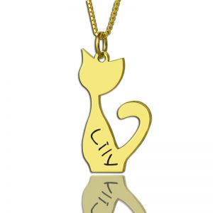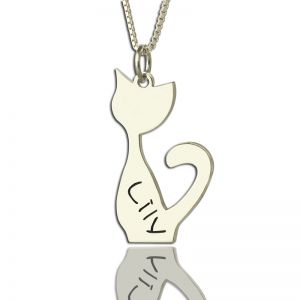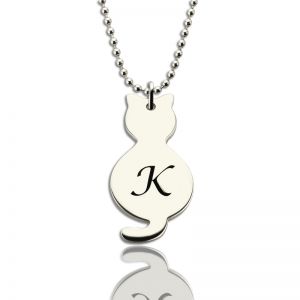 Personalized Tiny Cat Initial Pendant Necklace Silver