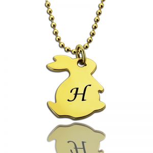 Tiny Rabbit Initial Charm Necklace 18k Gold Plated