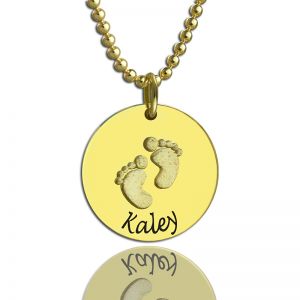 Personalized Baby Footprints Name Necklace 18k Gold Plated