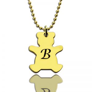 Cute Teddy Bear Initial Charm Necklace 18k Gold Plated