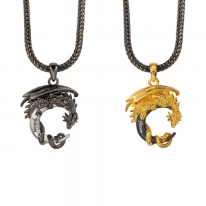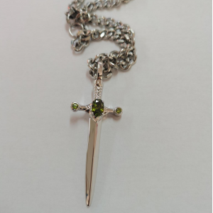 Sword Necklace with Cross and Dragon Birthstone Pendant All Black/All Silver