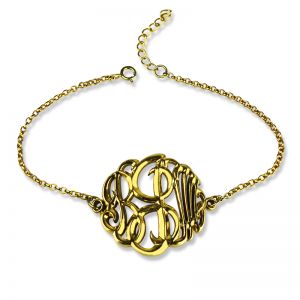 18K Gold Plated Monogram Initial Bracelet 1.25 Inch