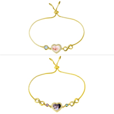Personalized Heart Photo Bracelet with Birthstone in Gold