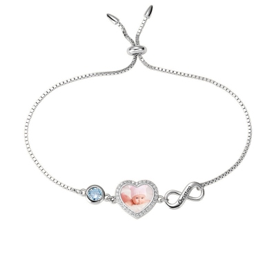 Personalized Heart-shaped Photo Infinity Silver Bracelet