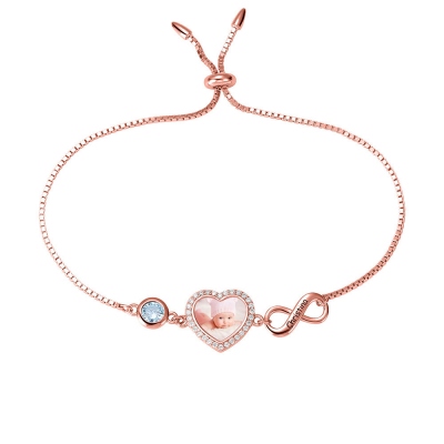Personalized Infinity Heart Photo Bracelet in Rose Gold