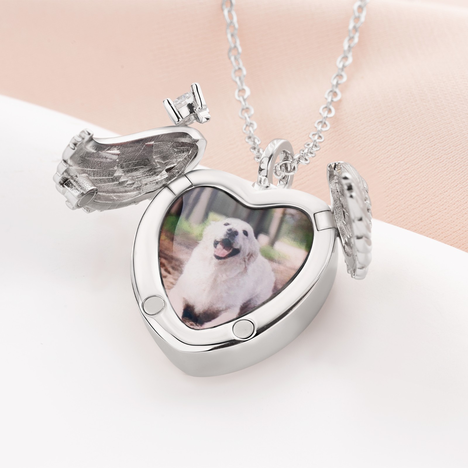 Custom Photo & Engraving - This necklace serves as a beautiful and meaningful way to memorialize your loved one. It features delicate angel wings design with a photo compartment to upload a cherished photo. You can also engrave message on the back of the necklace for a meaningful touch.
