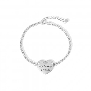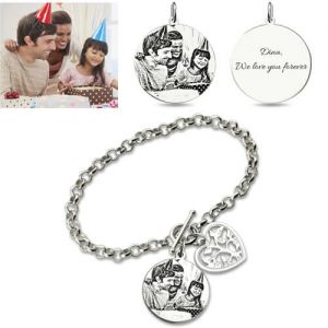 Heart Charm Engraved Memorial Photo Bracelet Sterling Silver