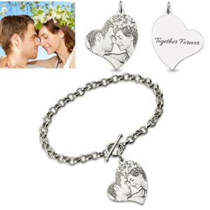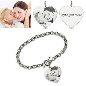 Heart Charm Engraved Memorial Photo Bracelet Sterling Silver