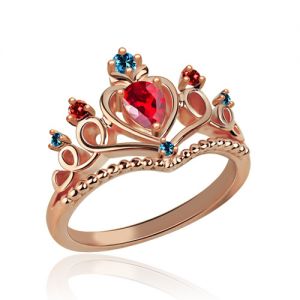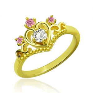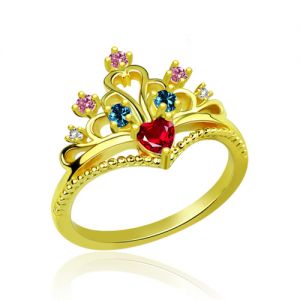 Princess Tiara Heart Ring With Birthstones Gold Plated