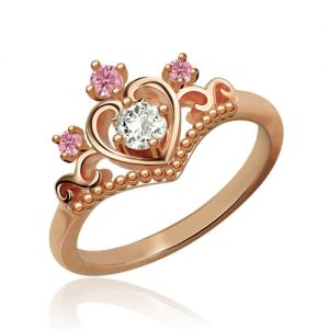 Fairytale Princess Tiara Birthstone Ring In Rose Gold