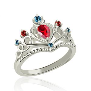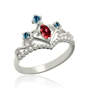 Fairytale Princess Tiara Birthstone Ring Sterling Silver