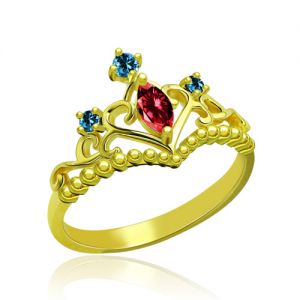 Princess Tiara Birthstone Promise Ring 18K Gold Plated