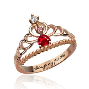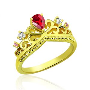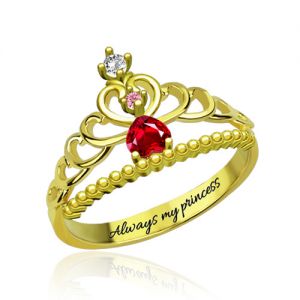 Fairytale Princess Tiara Birthstone Engraved Ring Gold Plated