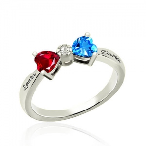 Custom Heart Birthstone Bow Ring Sterling Silver