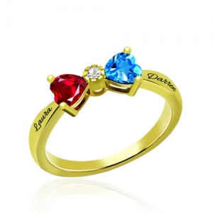 Personalized Heart Birthstones Bow Ring Gold Plated