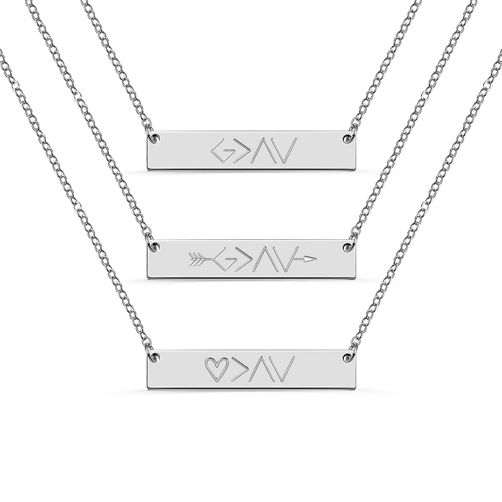 If you believe in God, then you must have heard of the saying "God is greater than the highs and lows", our necklace transfer this sentence into a series of symbols, engraving your belief in God on the necklace, close to your heart! God is in our heart, and bestow us strength when confronting with hard times! And we have free engraving on the back of the bar, you can engraving your belief or the motto you love, make the bar necklace one-of-a-kind. It's the perfect necklace for those who believe in God!