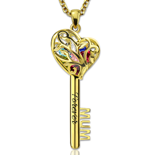 Mum Key Necklace allows 1-8 birthstone into the family tree design of cage, can represent a family get together and families deep love.It is an excellent gift for the mother. The key shape can symbolize open someone's heart and can also be used to give person you like.