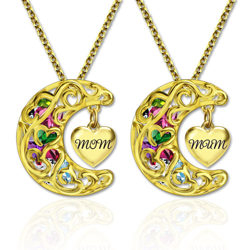 "Love you to the moon and back" necklace, give you the most loved one, tell her that you love her.This Moon Cage allows space for up to 1-8 heart birthstones to make the ring even more special! Choose Mum or Mom ,It is best gift for mother.