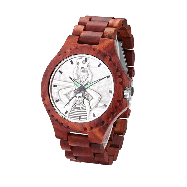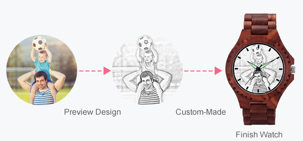 Our watches combines decent design and beauty of 100% natural wood.This kind of watch is precision manufacturing and use of high quality Japan movements. Thanks to the unique wood texture, you will not find the same wood watch in the world.In addition,you can personalized the photo to this watch, and you can choose characters to engraved on the back of watch.Don’t miss this unique product,order now!