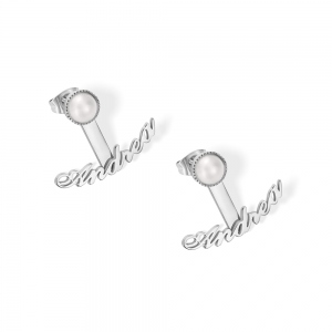 Personalized Name Logo Nameplate Stud Earrings, Unique Monogram Earrings, Unisex Minimalist Jewelry, Birthday Gifts for Him/Her/Family/Friends